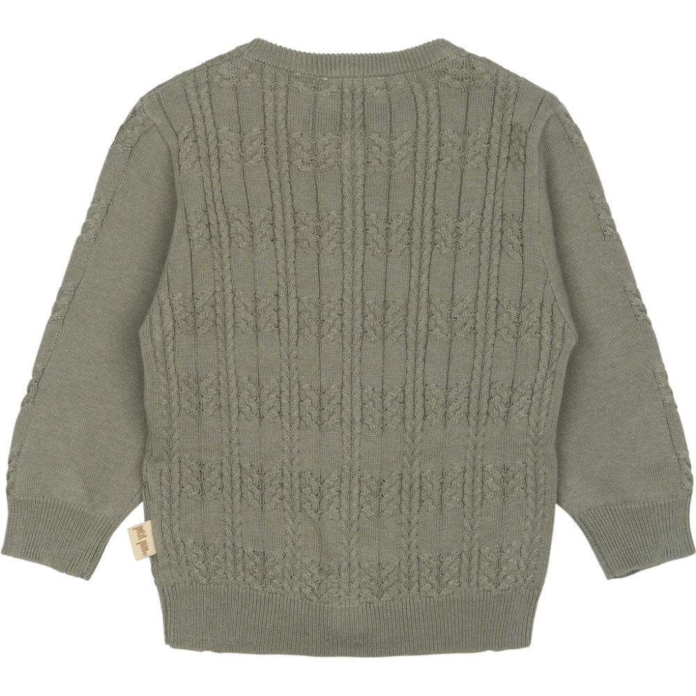 Nydelig cardigan med dekorativt hullmønster foran og på ermene. Den har strikket krage for et søtt uttrykk og lukkes med knapper i front. Myk, behagelig og perfekt over kjoler eller som et ekstra lag. Unisex