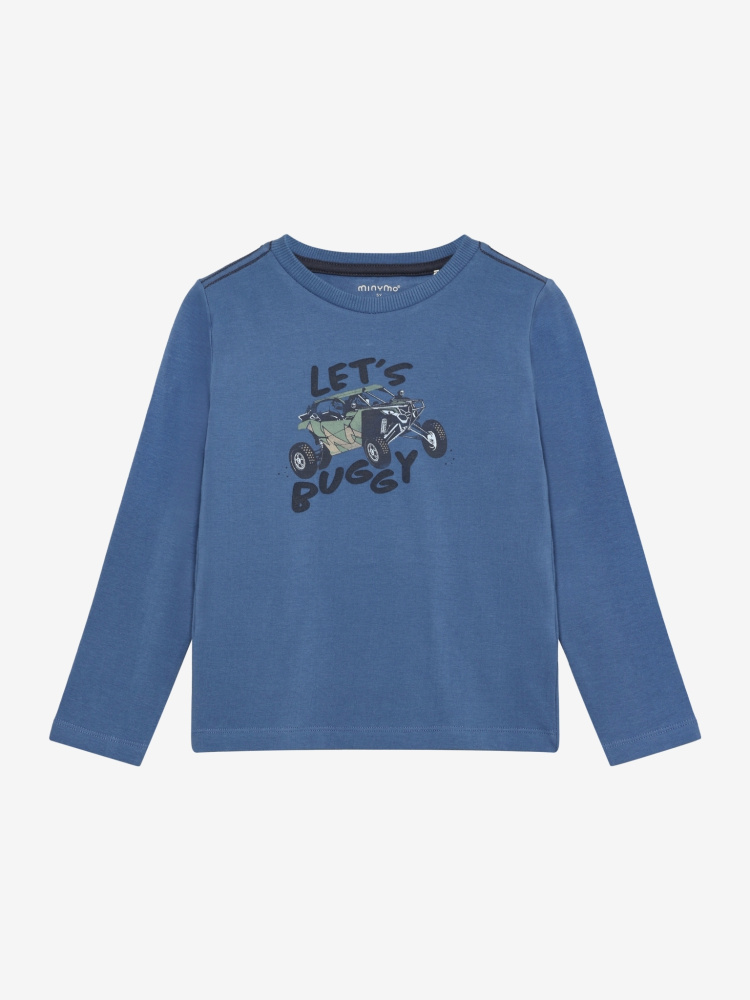 Langermet T-skjorte med stort print foran og ribbestrikket hals for en komfortabel passform. Laget i myk kvalitet som er behagelig for barnet å bruke. 95% bomull og 5% elastan