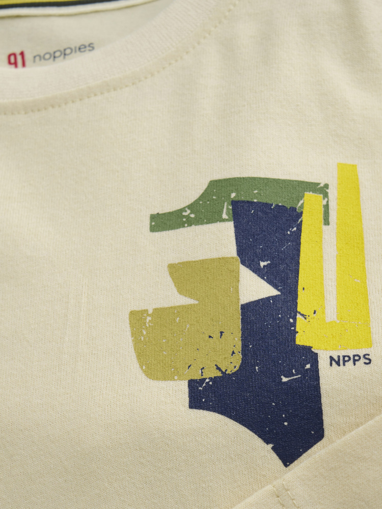 Rison langermet t-skjorte til gutt fra Noppies Kids, laget i mykt og GRS-sertifisert materiale. T-skjorten har rund hals, komfortabel passform og et tøft print på brystet. Et bærekraftig og behagelig valg til hverdagsbruk.