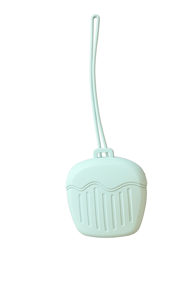 Smokkebeholder i 100% matgradsilikon. BPA-fri. Lang snor som kan festes rundt f.eks håndtak på vogn. Kan kokes eller vaskes i oppvaskmaskin. Tilgjengelig også i rosa