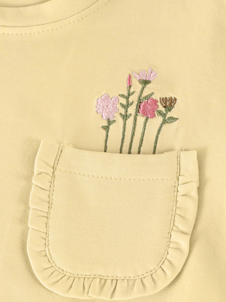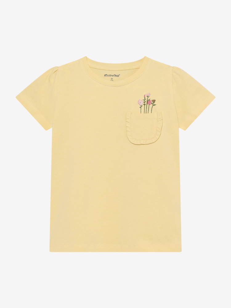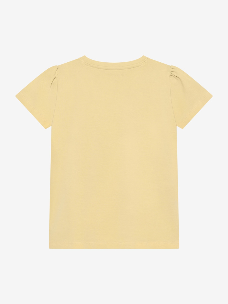 Myk og komfortabel T-skjorte med rund hals, lett puffede ermer og brystlomme. Fronten har både print og lomme som gir et søtt og moderne uttrykk. Laget i økologisk bomullsblanding og GOTS-sertifisert (CERES-0366) – perfekt til både lek og hverdag.