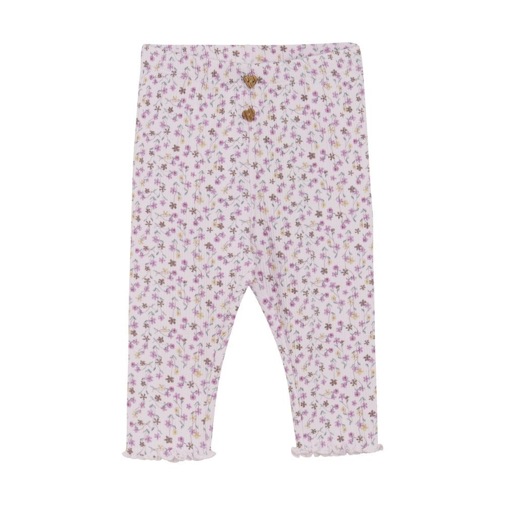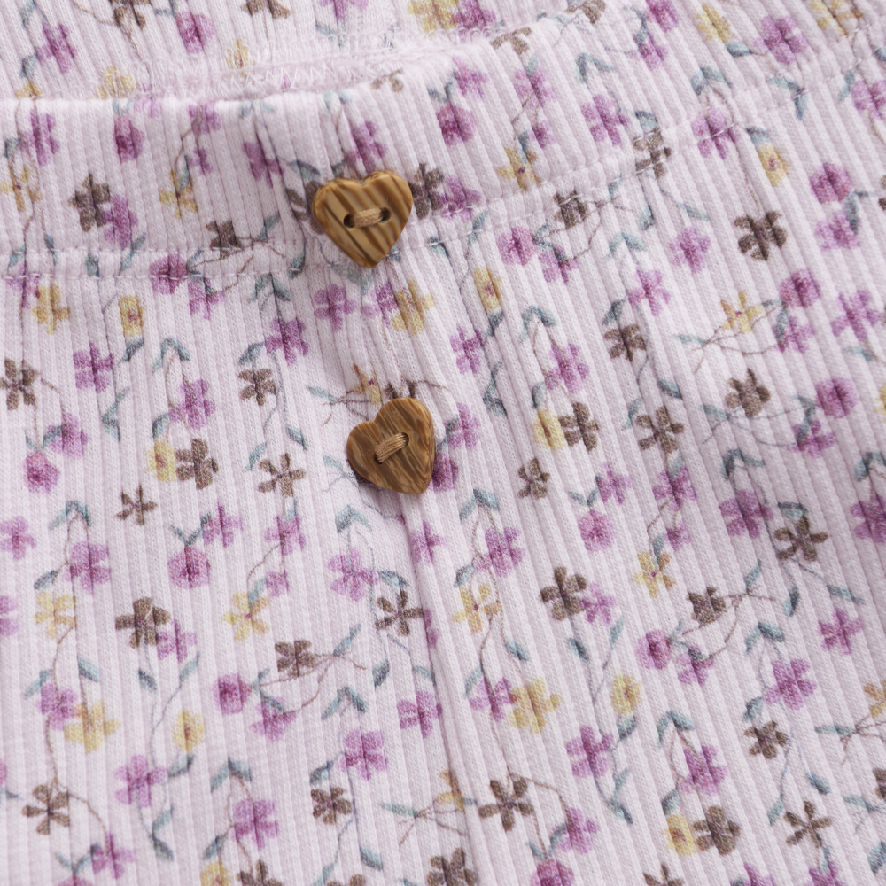 Komfortable leggings laget i myk bomullsribb (95 % bomull, 5 % elastan). Den fine blomsterprinten og søte volangdetaljene ved anklene gir et ekstra sjarmerende uttrykk. Pyntet med små hjerteformede treknapper.