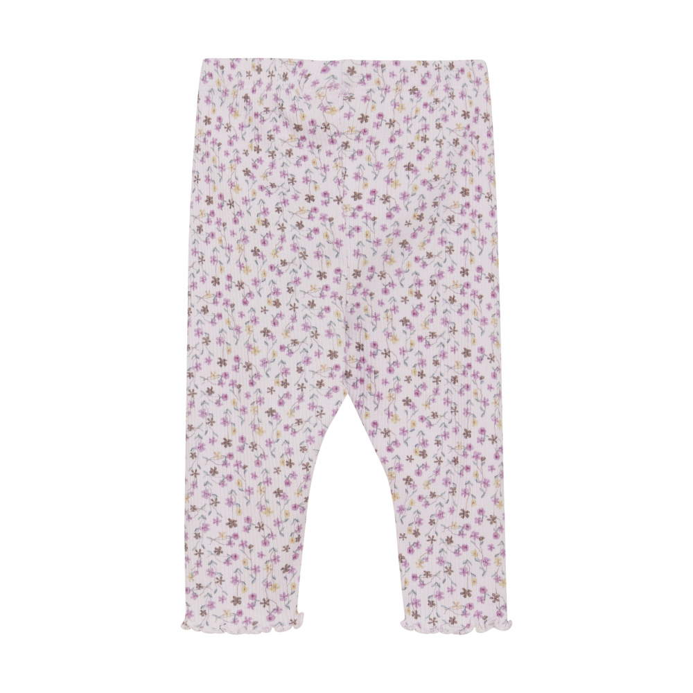 Søte leggings i myk bomullsribb – med blomsterprint og nydelige detaljer