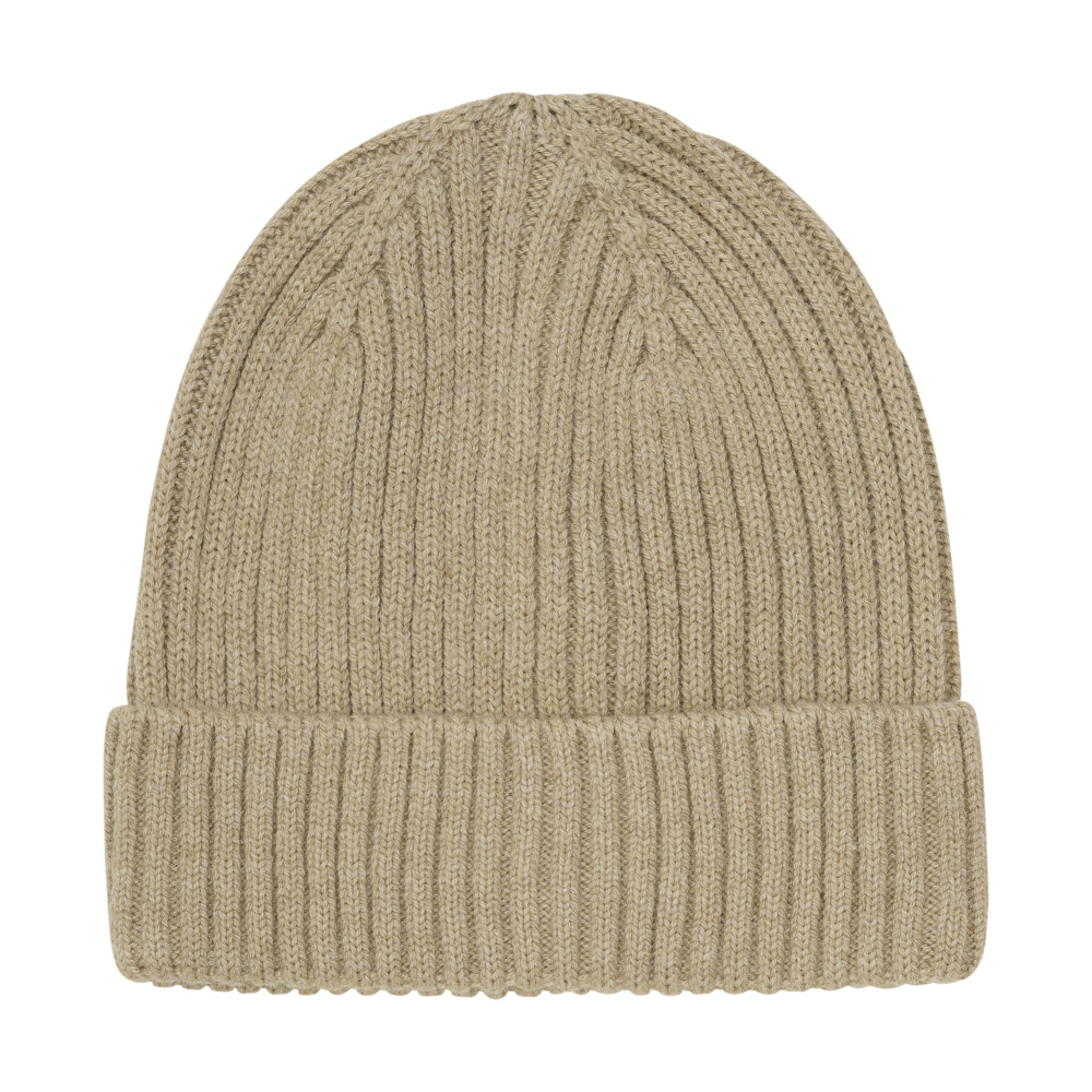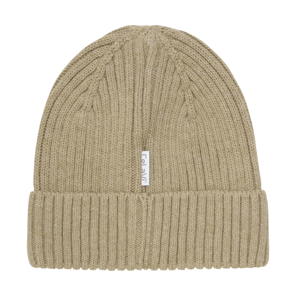 Beige lue fra CelaVi i 100% merinoull. Luen har en bred kant nederst som bidrar til god passform og et klassisk utseende. Liten logo med refleks bak på luen
